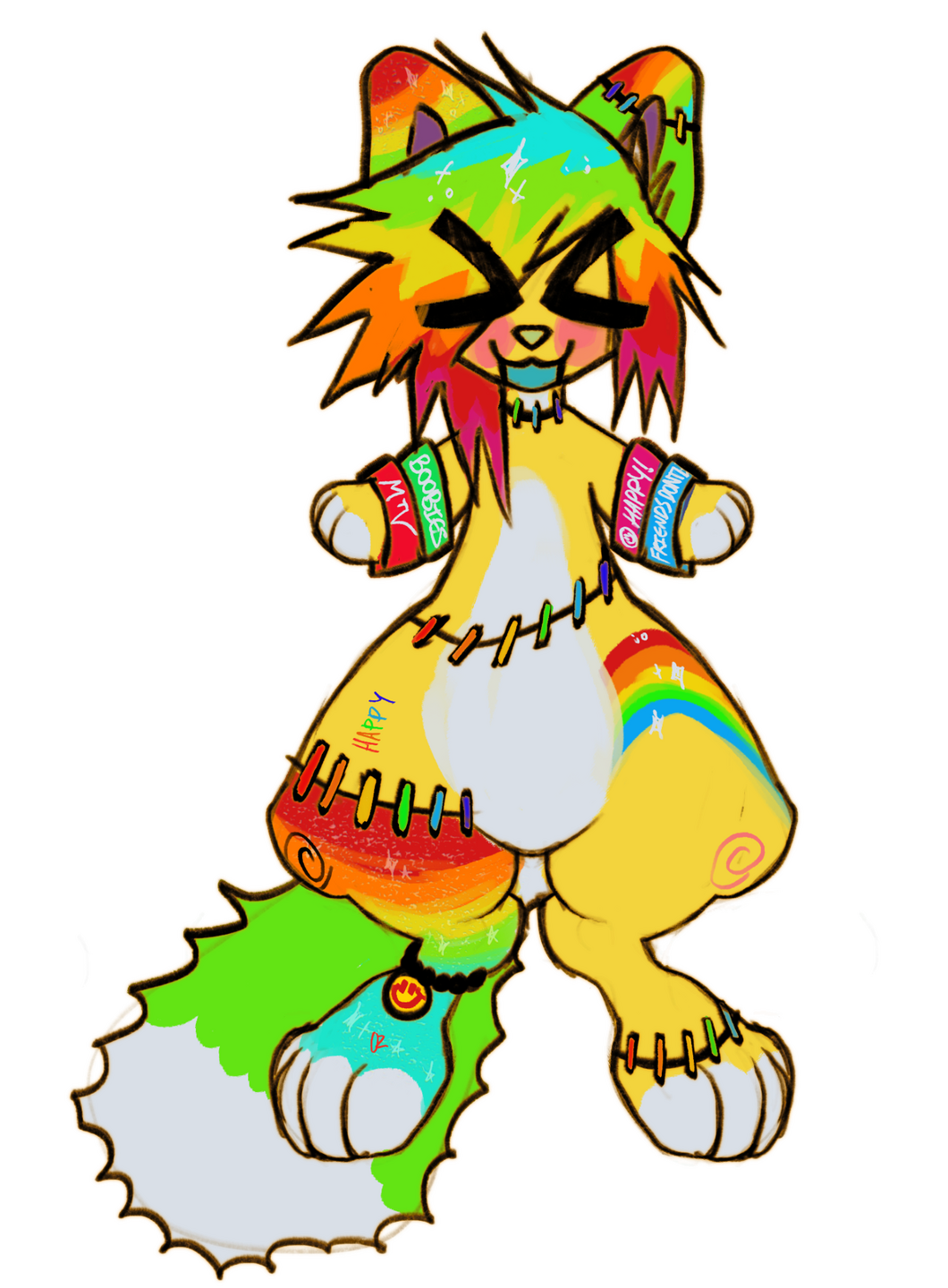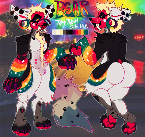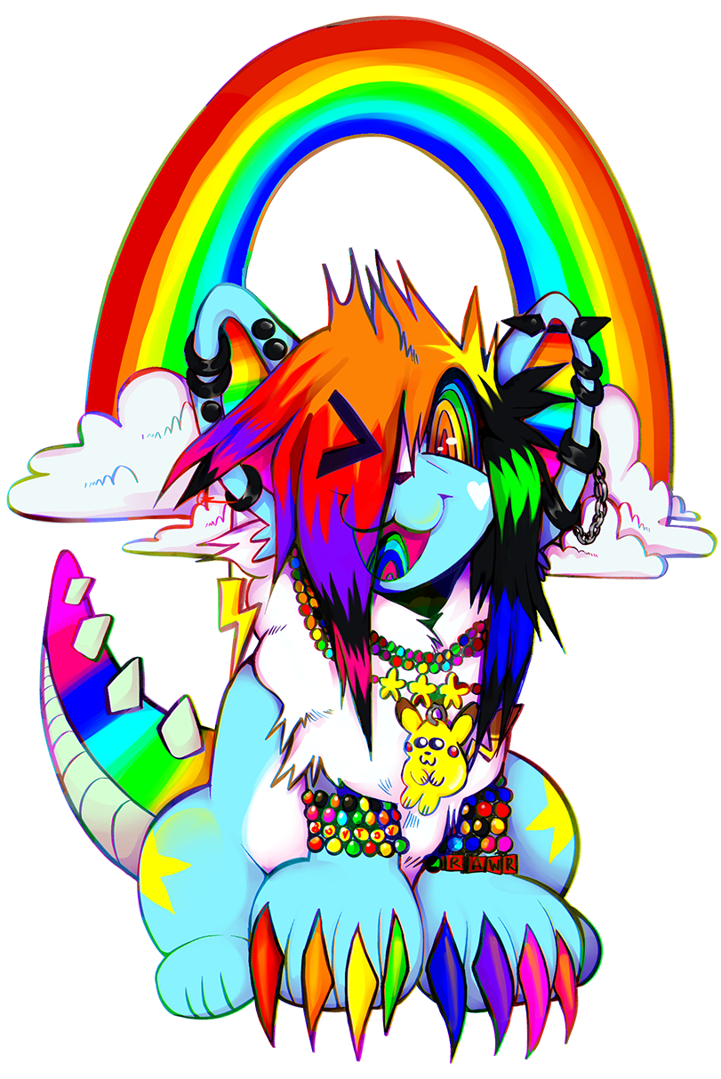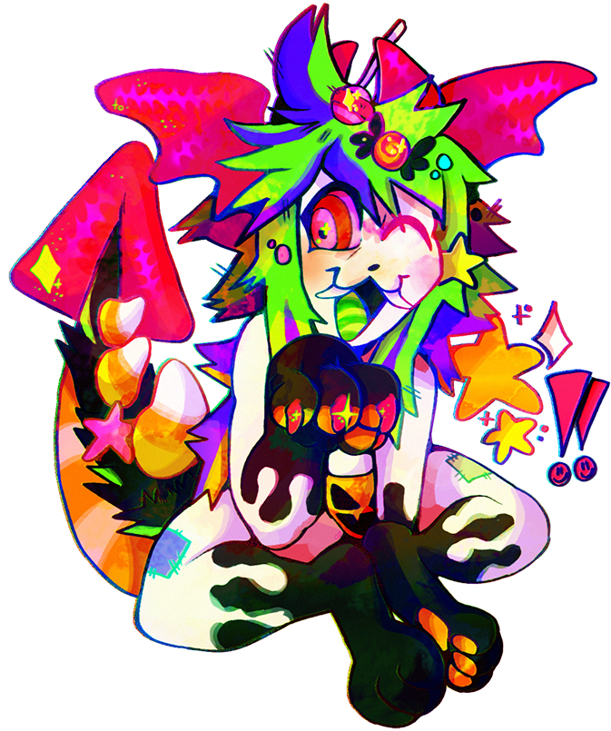 I primarily work with a wide array of things; animals, monsters, anthros, ferals, or just creatures of all kind!!! I love shoving as much rainbow as I can into a drawing as I can. I have so much enjoyment in colorful and crazy characters.