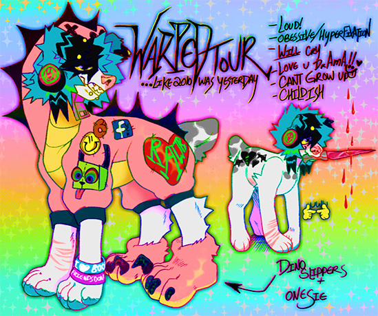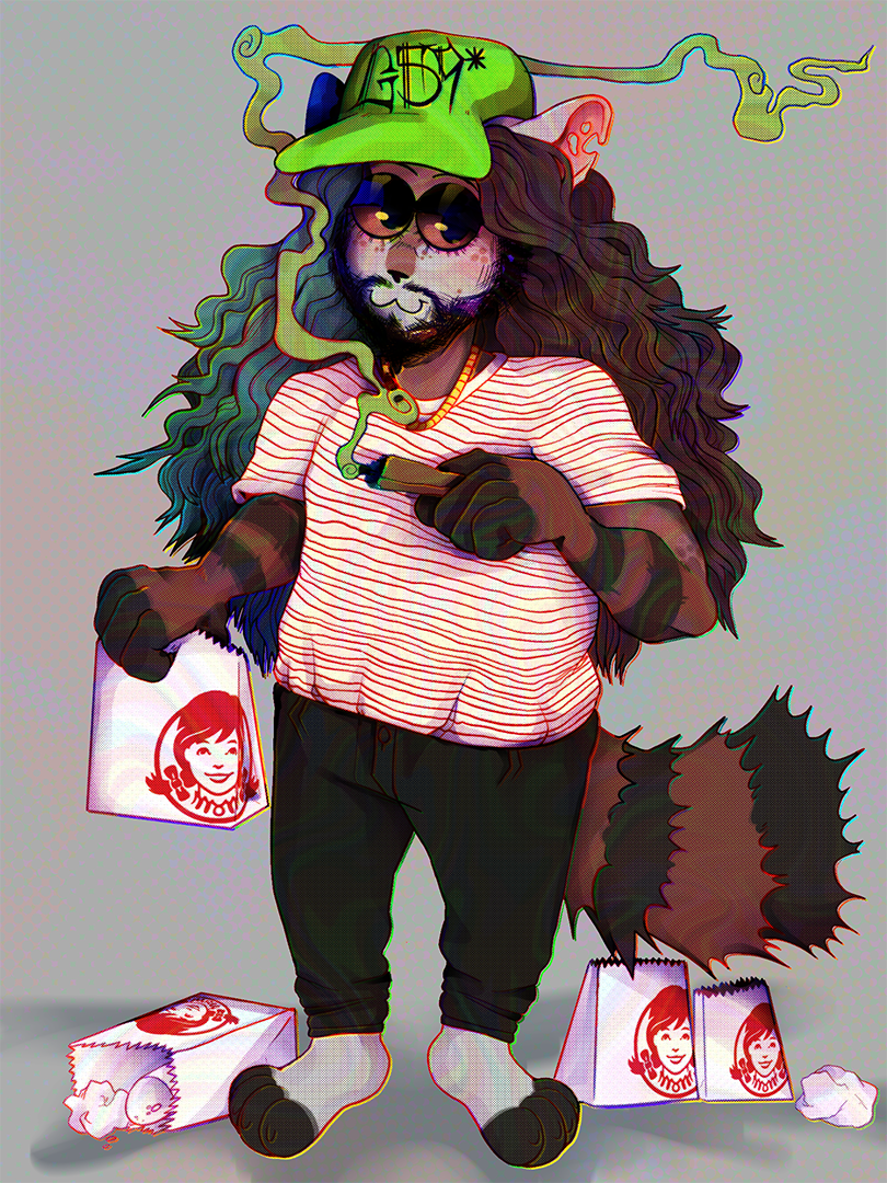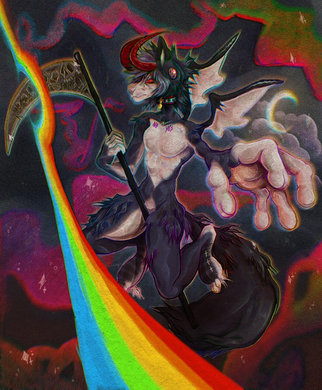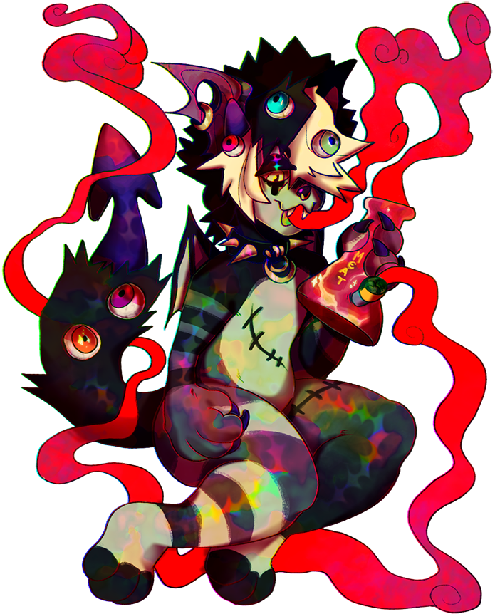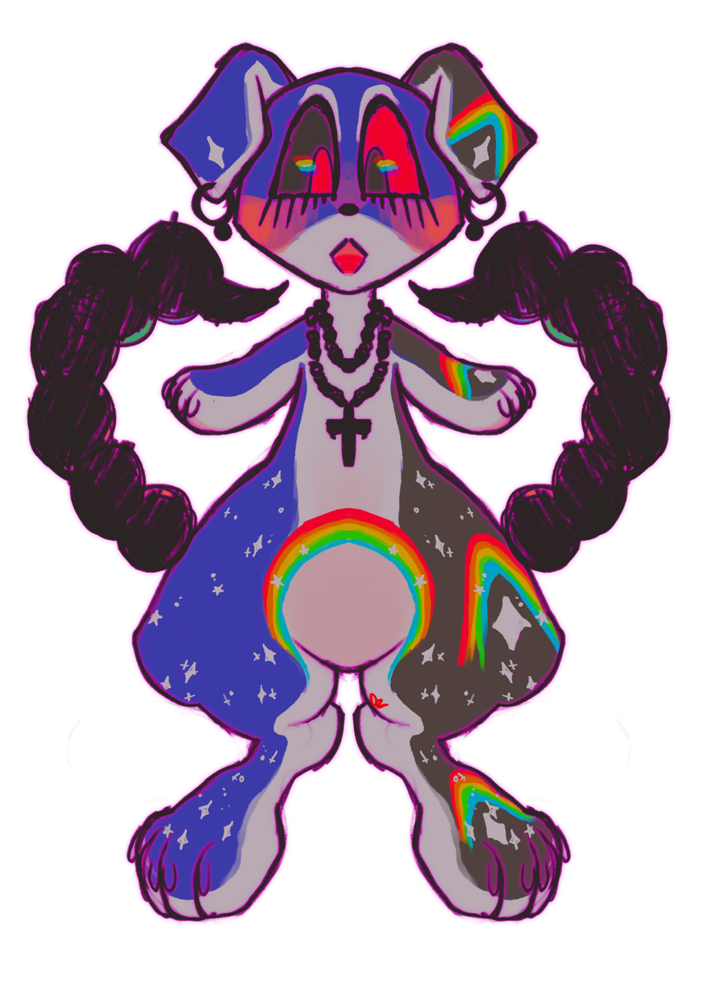 I primarily work with a wide array of things; animals, monsters, anthros, ferals, or just creatures of all kind!!! I love shoving as much rainbow as I can into a drawing as I can. I have so much enjoyment in colorful and crazy characters.